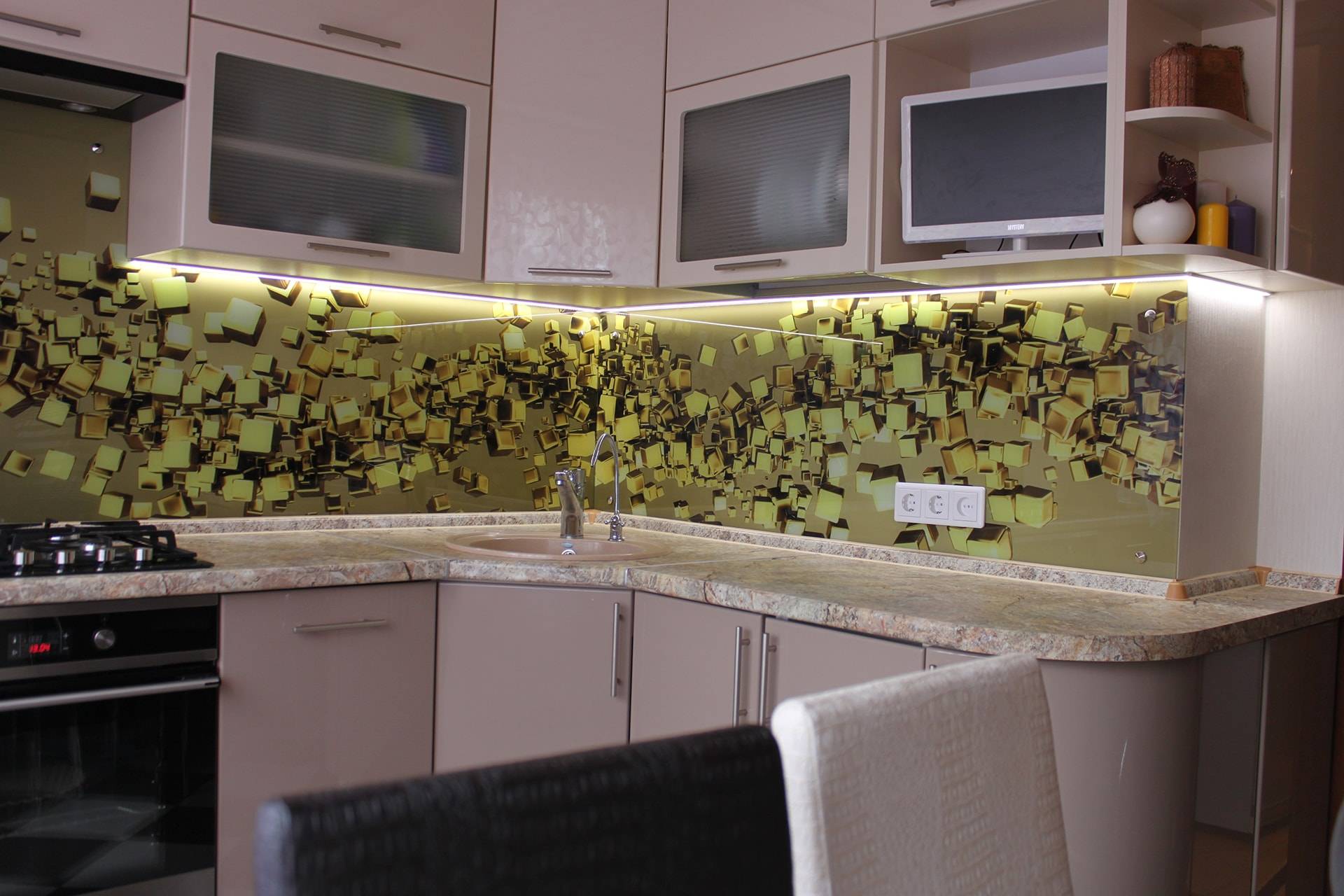 Установка стеклянного фартука