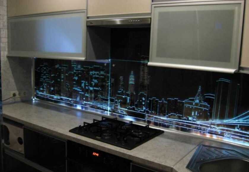 Сегодня большой популярностью пользуется стеклянный фартук на кухню с подсветкой. Подсвечивание существует двух видов. Каждый способ заслуживает внимания и может успешно применяться на кухне.