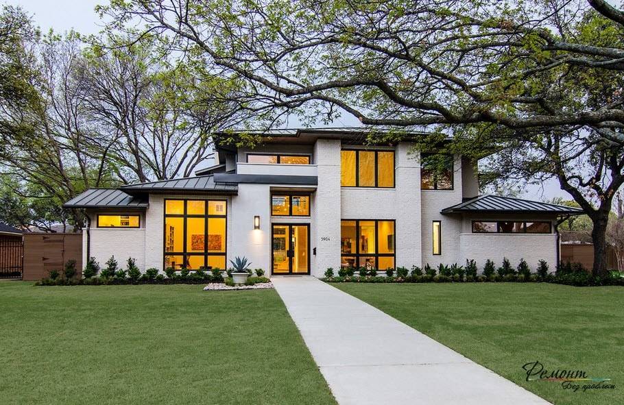 Для фасадов современных домов в стиле минимализм активно используют плитку