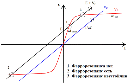 Феррорезонанс напряжений возможен, когда в сети имеется индуктивность, характеризующаяся нелинейным вольт-амперным свойством. Данная характеристика свойственна катушкам индуктивности, где сердечники производятся из ферромагнитных компонентов. Особенно это касается выпрямителей линейки НКФ. Такое негативное явление обуславливается небольшим показателем сопротивлений омического и индуктивного типов по отношению к силовым трансформаторам.