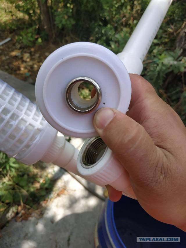 - На входном отверстии изнутри установить сетку – она будет разбивать струю воды.