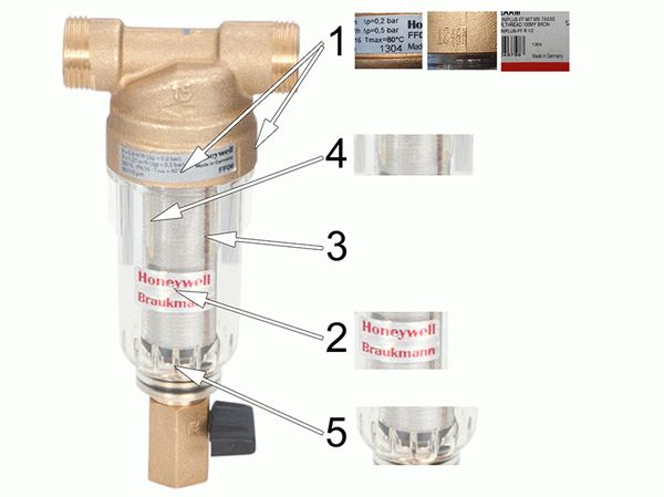 Для задержания крупных частиц (100 мкм) в магистрали специалисты рекомендуют продукцию Honeywell. Этот производитель выпускает качественные фильтры с цилиндрической сетчатой вставкой. Модель FF06 оснащена прозрачной пластиковой колбой для контроля степени загрязненности без разборки. Для слива накопленных загрязнений в нижней части установлен надежный металлический вентиль.