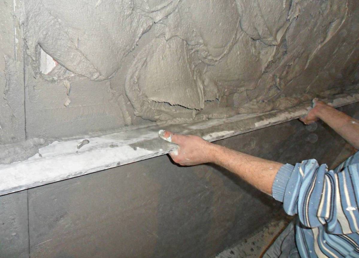 3. Последующие слои наносятся на 6-8 см внахлест, выравнивается каждый с помощью металлического правила. Толщина слоя зависит от количества неровностей и дефектов на стене (иногда до 1,5 см).