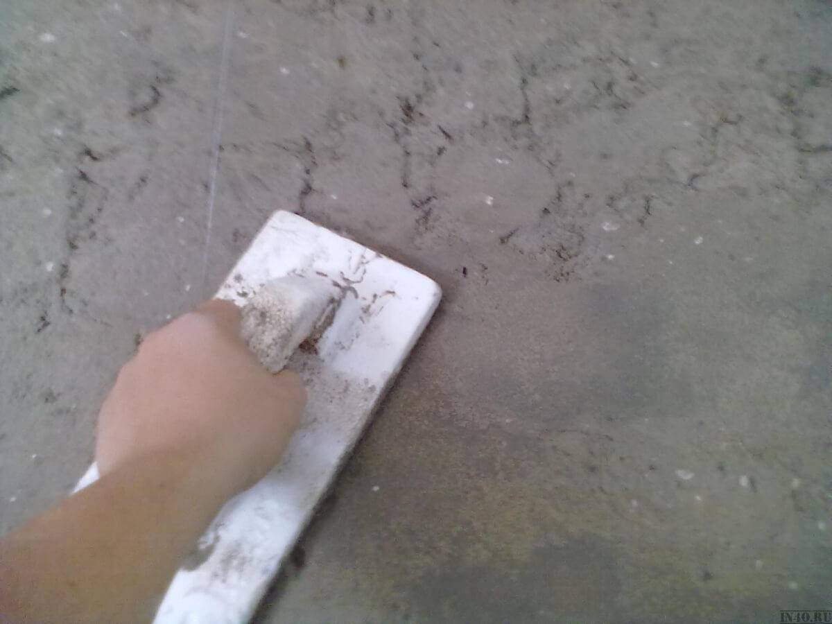 В результате абсолютного просыхания специальной жидкости производится шпатлевание плоскости исходным веществом. Для основы проводится заделывание глубочайших трещин и пустот.
