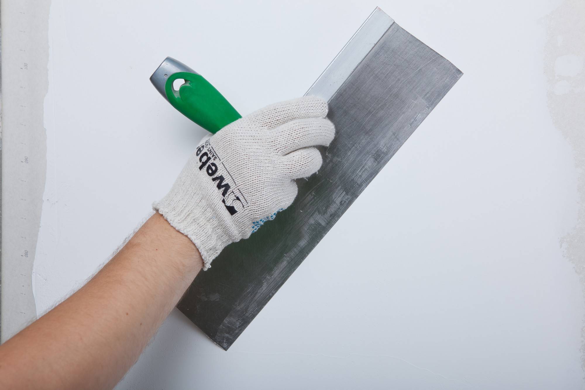 - Шпатели, которые облегчат нанесение финишной шпаклевки — специальный для работы в углах и рядом со стыками, большой для формирования слоя на обширной плоскости, маленький для набрасывания раствора.