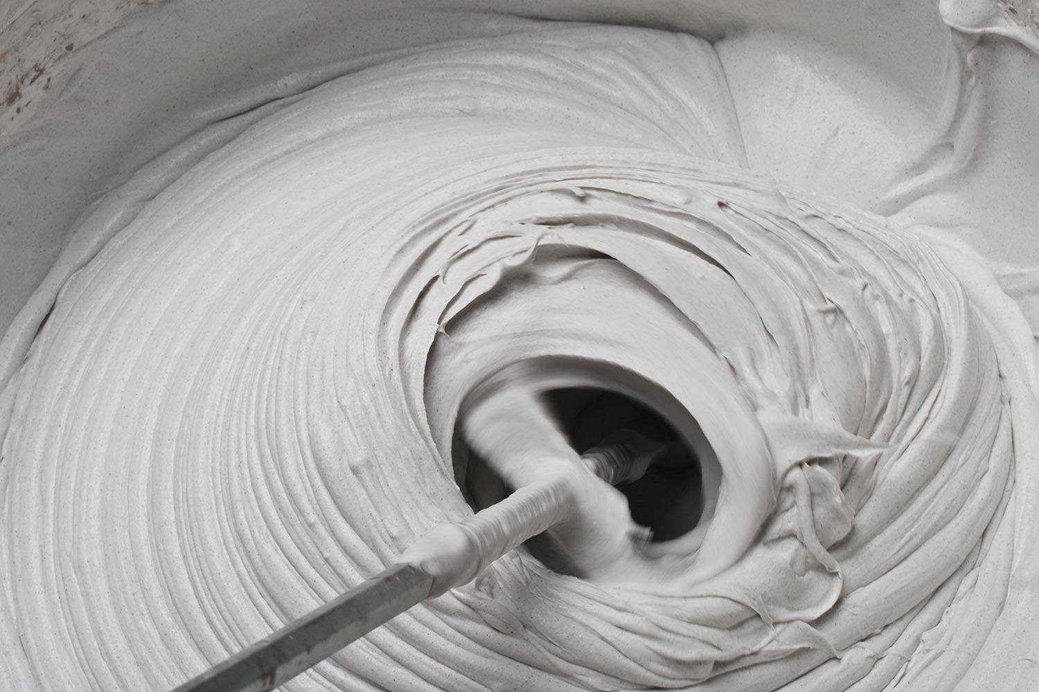 Мешок сухой смеси (25 кг) смешивают с 8–9 литрами чистой воды. Смешивание производят мощной дрелью с насадкой в течение 3–5 минут. Для лучшего растворения связующего, смеси дают отстояться примерно в течение 10 минут. После легкого повторного перемешивания смесь готова к использованию. Растворная смесь пригодна для использования примерно в течение 2 суток с момента затворения водой. Неиспользованную растворную смесь нельзя оставлять в емкости для смешивания, в шлангах и пр. оборудовании более, чем на 2 суток (например, на выходные дни).