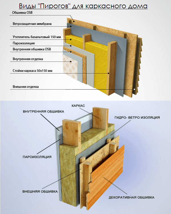 В финском варианте монтажа обшивки внешний слой закрывается гидроизолирующей и ветрозащитной пленкой, листами Изоплата, специальным гипсокартоном или другими мягкими теплоизолирующими материалами. В российском варианте внутренний слой утеплителя стены отделяется пароизоляцией и ГКЛ. Установка изнутри второго слоя ОСП ухудшает процесс газообмена в стене и возникает возможность образования в ней конденсата. Такая конструкция финского пирога с обшивкой позволяет дому «дышать», принимать водяной пар и отдавать его в окружающую среду.
