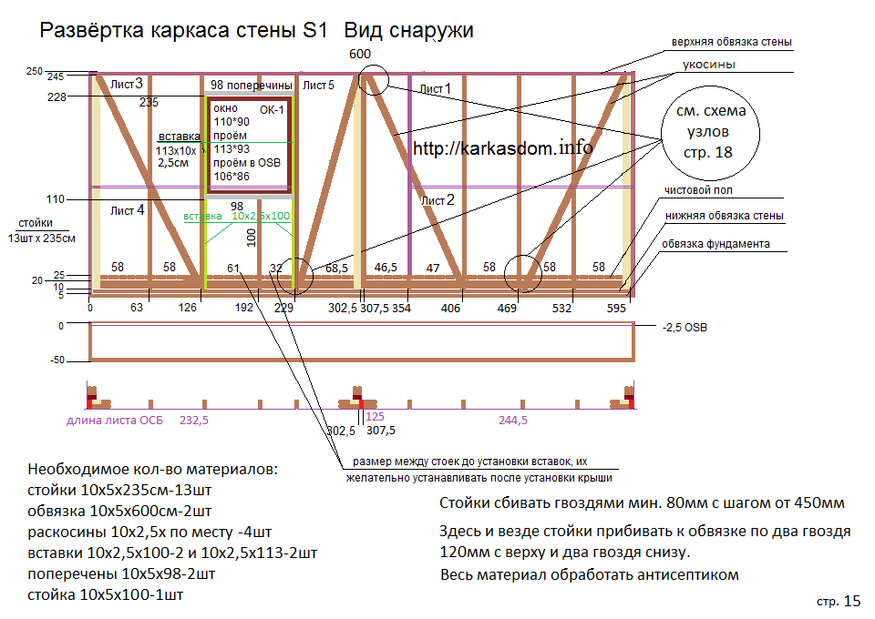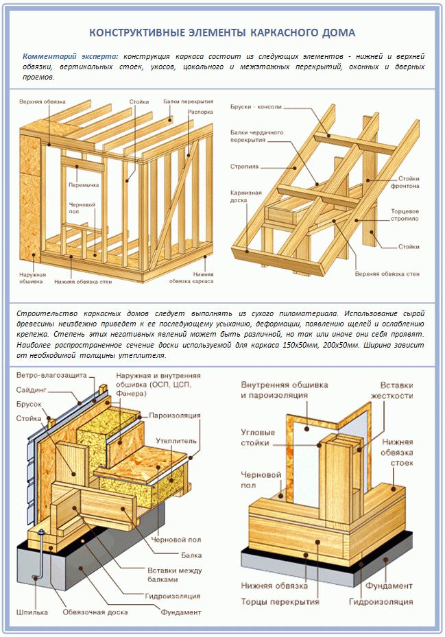 Кроме того, устройство стен каркасного дома в деталях подразумевает, что на углы будет идти большая нагрузка. Поэтому их лучше делать из нескольких брусков, а не из одного.