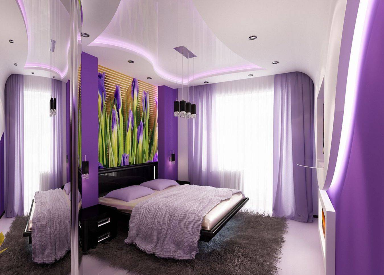 Дизайнерские оригинальные идеи на фото: фиолетовой спальни в различных стилях.