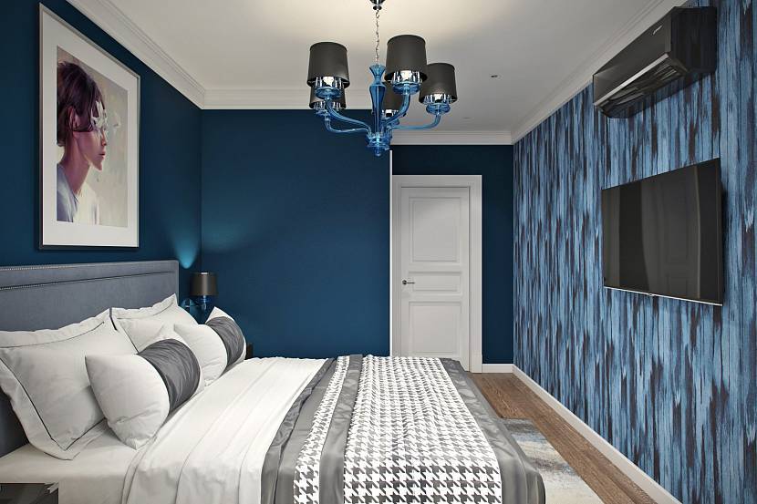 Оттенок индиго в интерьере спальниИсточник elnikova.com
