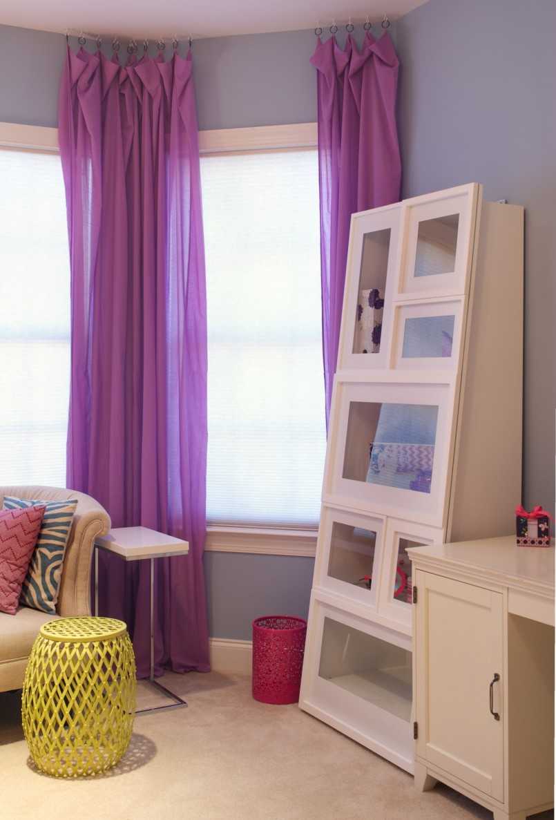 Для детской комнаты ребенка или подростка оттенки фиолетового являются универсальным вариантом выбора, как для мальчика, так и для девочки. При подборе портьер необходимо учитывать тип интерьера, уровень освещенности и квадратуру помещения.