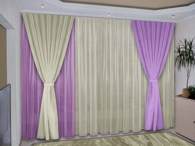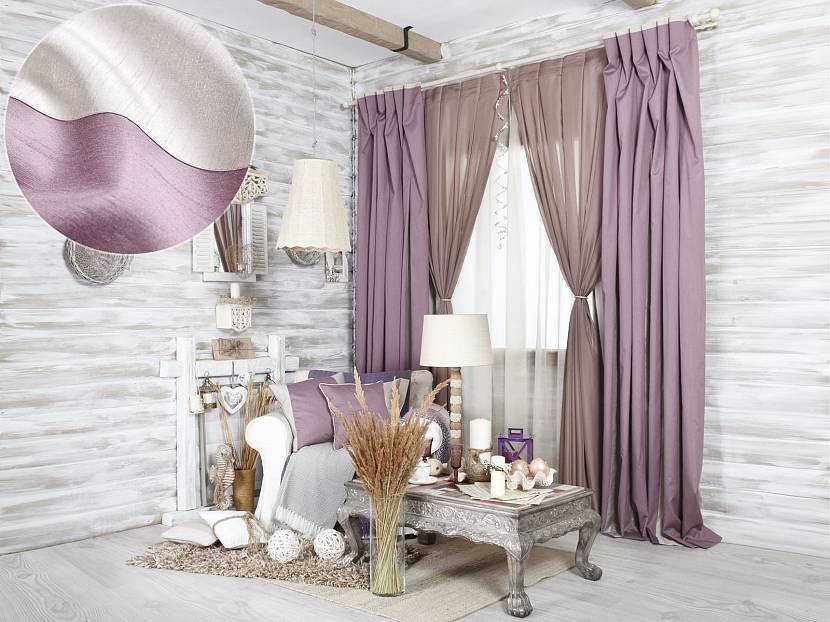Комбинация сиреневого и бежевого оттенка в тканях для штор гостинойИсточник domshtor.ru