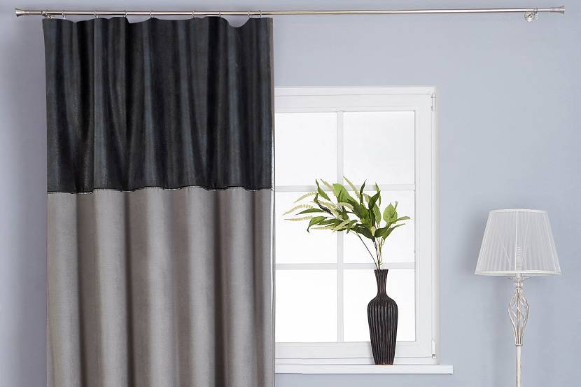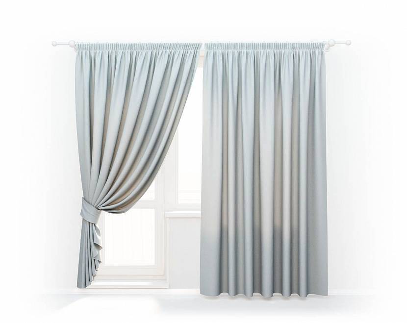 Оформление маленького окна двухцветными серыми занавескамиИсточник goods.ru