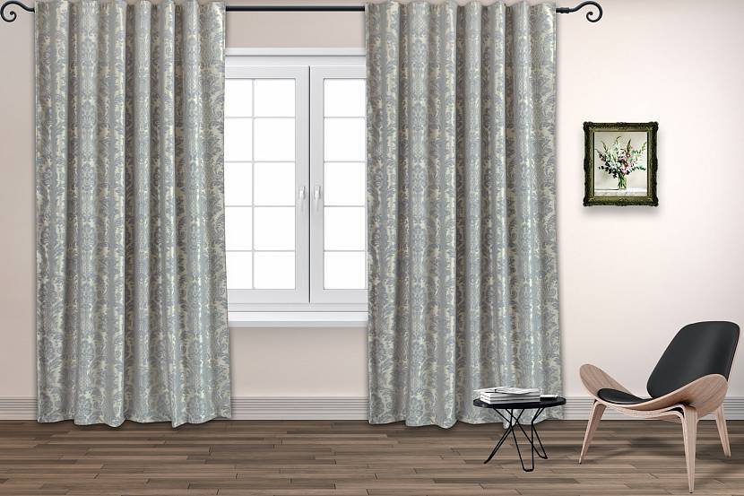 Серые шторы с красивым серебристым рисунком длиной до полаИсточник ozon.ru