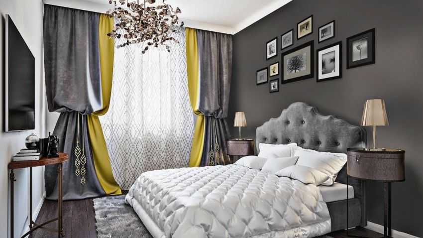 Однако те, кто следит за трендами в дизайне интерьера, знает, что сегодня набирает популярность так называемая интимизация пространства. Это значит, что любители мрачных тёмных помещений могут ликовать, потому что мода на их стороне — в спальню можно вешать любые тёмные оттенки, вплоть до графитового серого и даже чёрного.