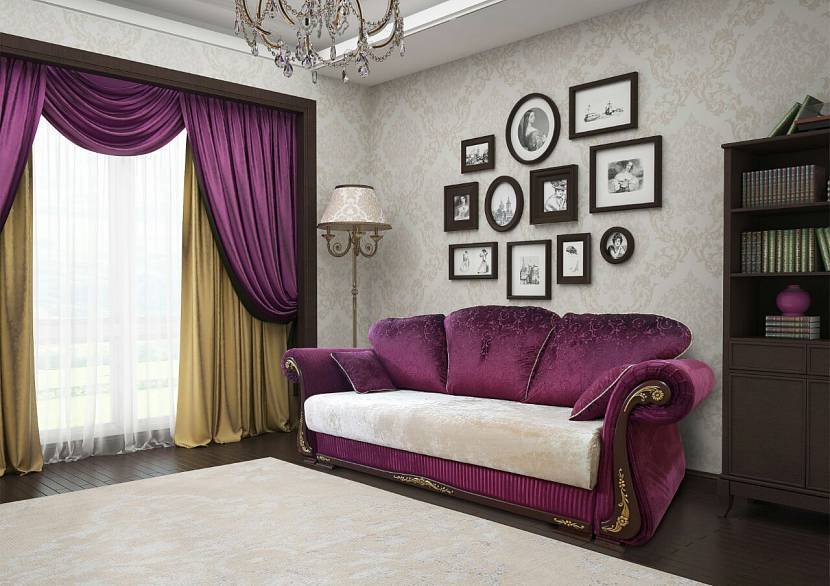 Сложности при создании определенного стилевого направления требуют исторические стили, например, барокко, или классицизм, рококо. Их визитной карточкой являются тяжелые ламбрекены, сложные по своему исполнению вискозы. Такие характерные черты отлично сочетаются с фиолетовыми шторами, создавая атмосферу строгости и шика.