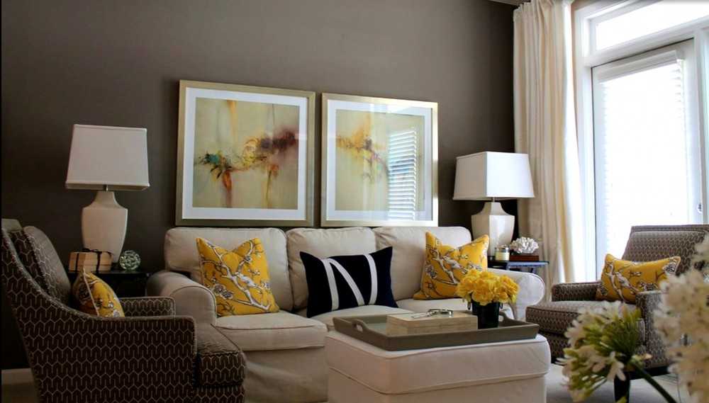 Чтобы оживить дизайн, необходимо применить яркие, теплые, свежие акценты желтых, оранжевых оттенков. Всё, что нужно привнести – это вазоны золотистого цвета либо африканские маски, даже будет достаточно повесить яркие шторы или гардины, и комната заиграет новыми красками.