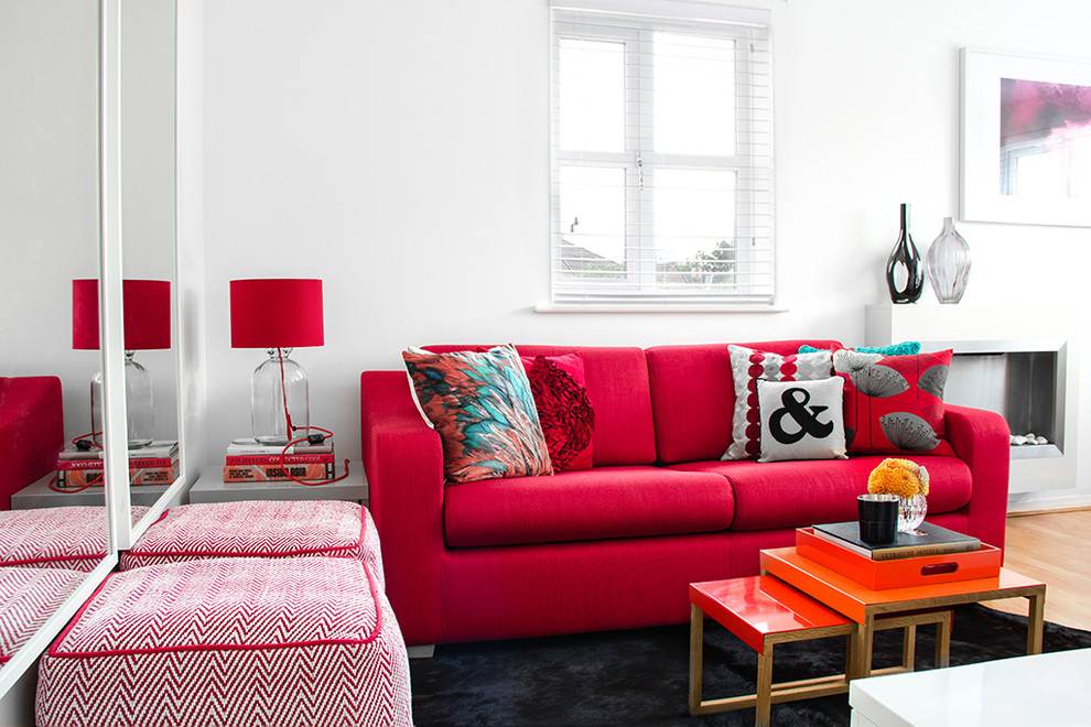 Оба цвета – яркие, активные, поэтому при их сочетании нужно чувствовать меру: сгладят резкий контраст дополнительные предметы интерьера – подушки, панно, другая мебель. В качестве дополнительных выбирают светло-зеленые, песочные, бирюзовые цвета.