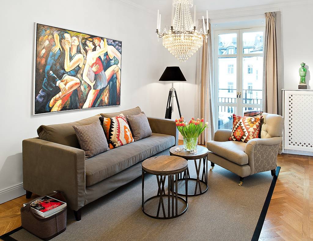 Это будет идеальное сочетание праздника и повседневности в вашей квартире, особенно если комната на темной северной стороне. В таком обрамлении, Вам захочется приходить в гостиную для отдыха или приёма гостей.