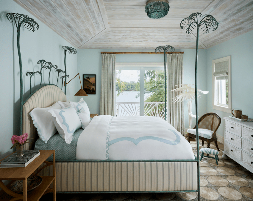 В спальне в стиле прованс не обойтись без сочетания «теплого» фисташкового и «холодного» синего.