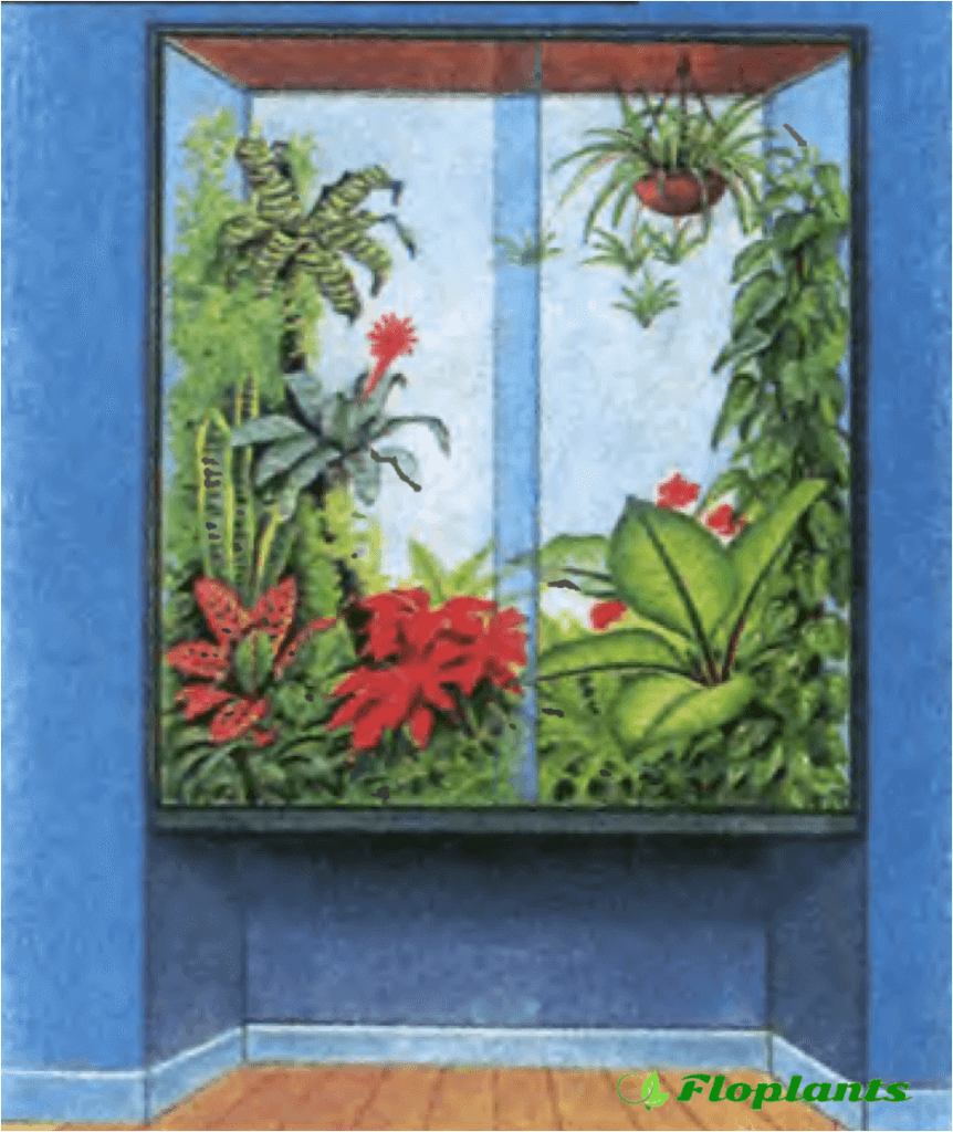 В такой зеленой витрине многие виды растений чувствуют себя очень хорошо, а иногда и лучше, чем в зимнем саду. Для такого выращивания отлично подходят Акалифы, Бугенвиллии, Колумнии, Каладиумы, Антуриумы и Орхидеи.