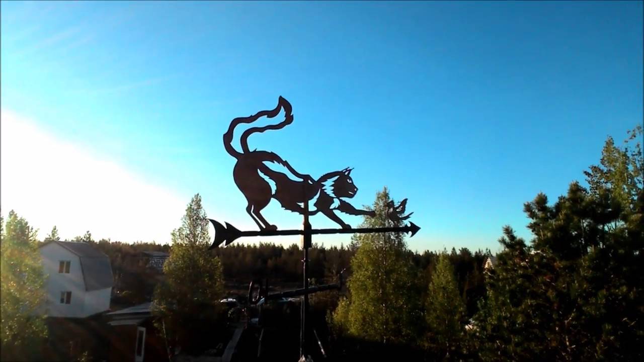 Крайне неоднозначно интерпретируется изображение кота на крыше. Выбор конструкции флюгера с такой фигурой может означать противоположные признаки. С одной стороны это образец свободолюбия, интуиции и хитрости, обратная сторона медали – любовь к отдыху и вальяжной жизни.