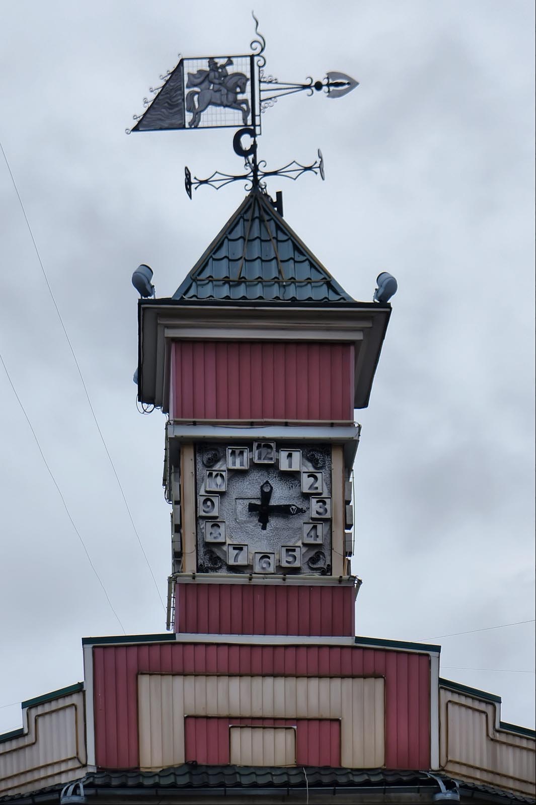 Компактный флажок вращается вокруг оси от порывов воздуха. Конструкция одновременно играет практичную и декоративную роль. Ранее устройство использовали для измерения силы ветра, потом стало оригинальным украшением крыши.