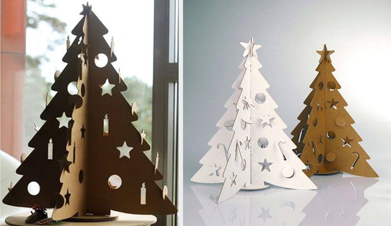 Так же из обычных коробок можно сделать небольшие настольные елочки.