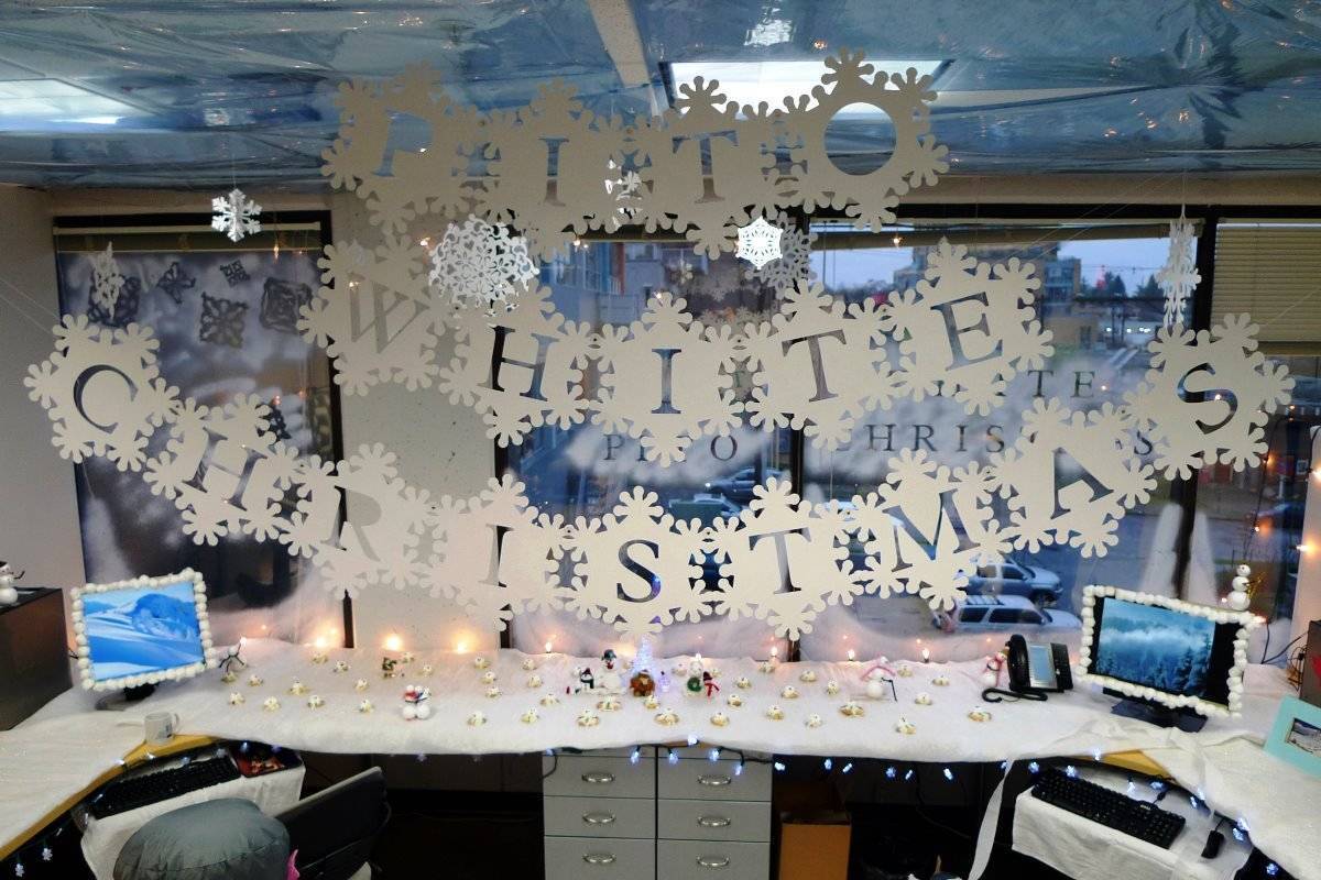 Выход здесь один – прийти к консенсусу, выработать единый стиль и оформить в нем все рабочие места. Коллективный мозговой штурм иногда дает удивительный результат – настоящий шедевр праздничного декорирования, ничуть не уступающий работам дизайнеров-профессионалов.