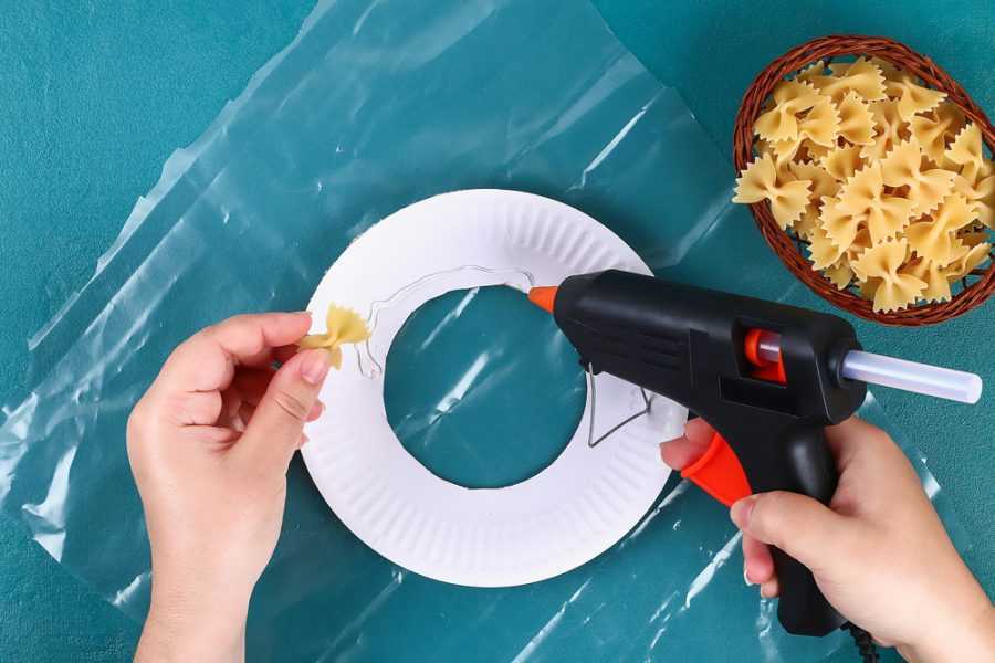 Если нужно приклеить зерна одного вида, то идеальным решением будет оклеивание при помощи большого блюда. В него насыпают подготовленный горох, фасоль или другие семена.
