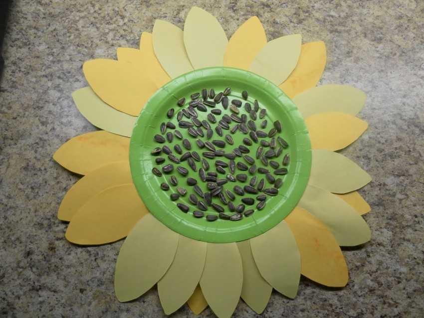 Внутри нарисуйте цветы или приклейте цветы, вырезанные из любого глянцевого журнала. На большинстве фото поделок из семечек цветы как раз приклеены и можно смело говорить о том, что на общем виде поделки это сказывается исключительно с положительной стороны.
