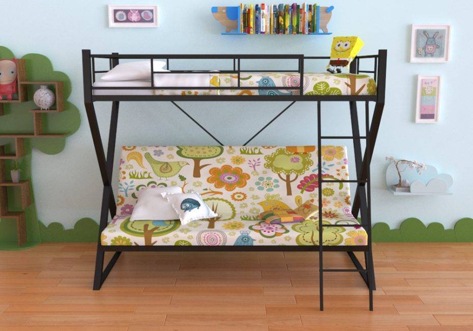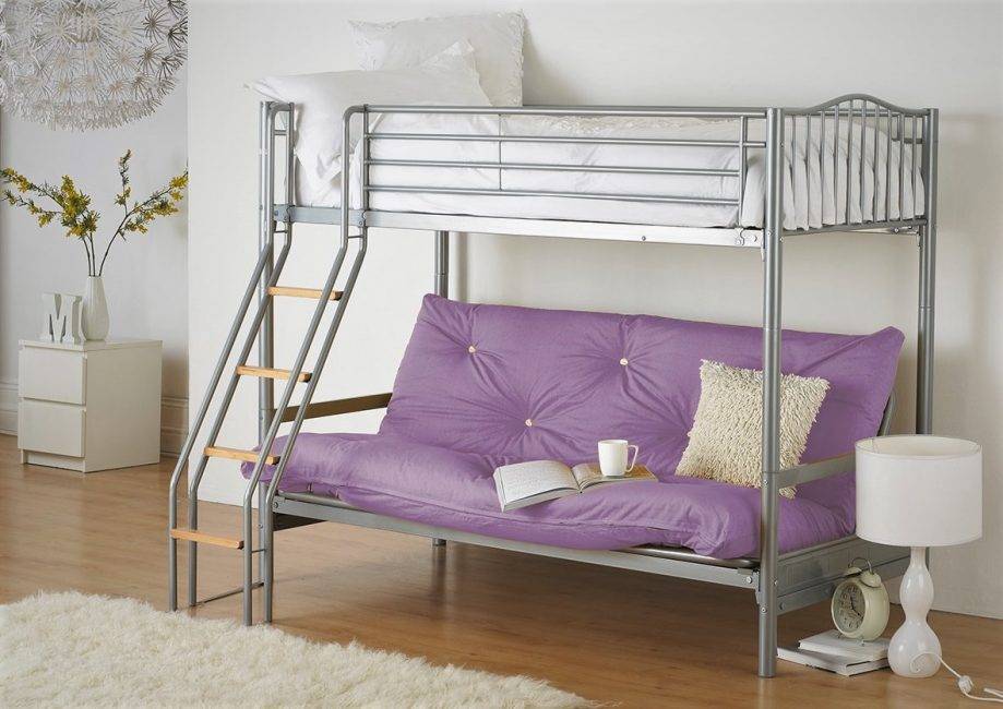 Если у вас ребенок подросток или вы подбираете кровать себе, отличным вариант – металлическая конструкция. Для малышей она будет травмоопасна, а вам – в самый раз. Кроме того, такая кровать с диваном – идеальное решение для современного стиля интерьера, хай-тек, минимализма.