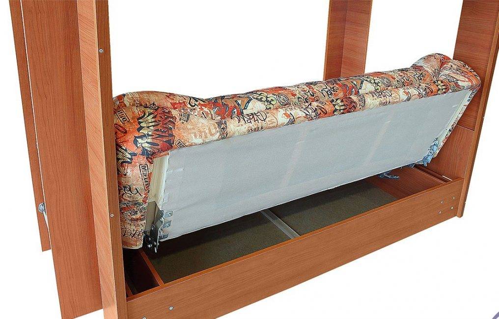 Это достаточно сложный механизм, который позволяет преобразовать диван в двухъярусную кровать. При этом односпальные места будут располагаться друг над другом.