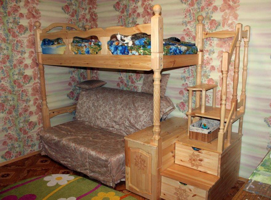 Двухъярусные деревянные кровати выдвижного типа: примеры фото