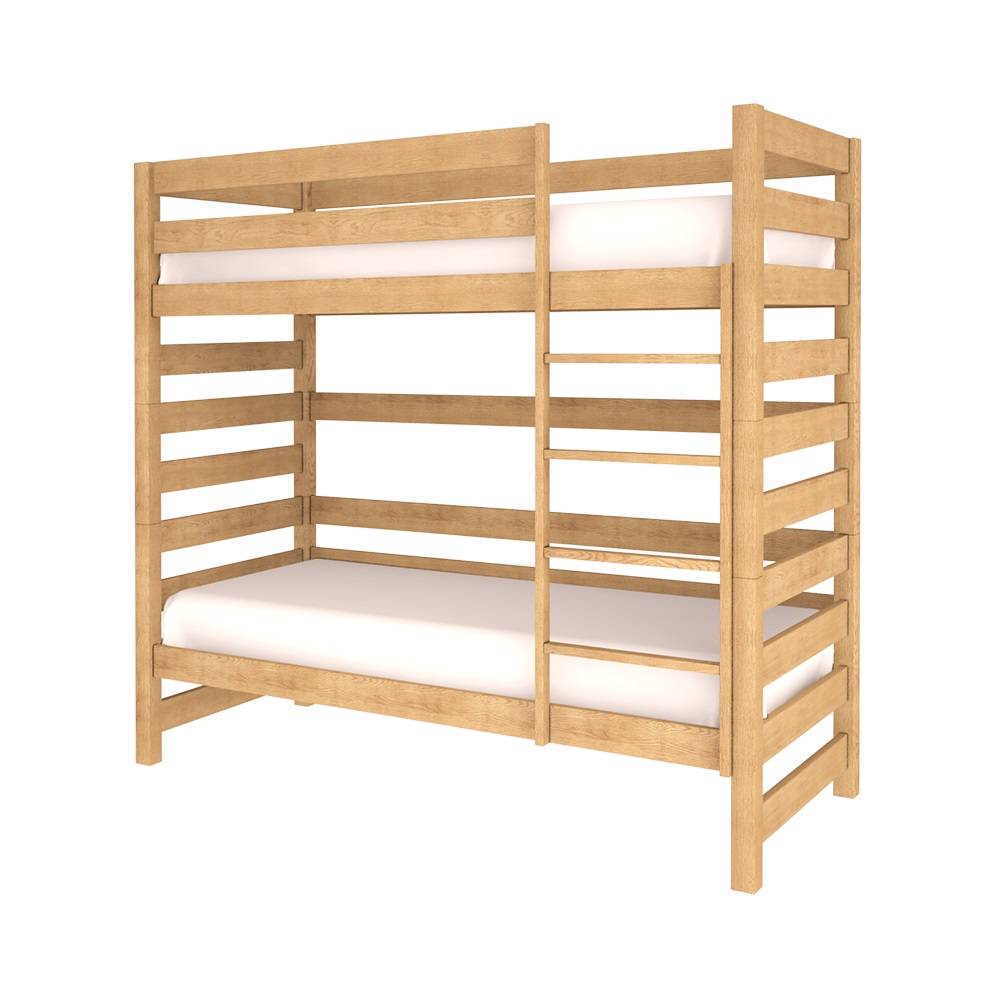 Традиционная деревянная двухъярусная кровать своими руками является самой простой конструкцией, которую может выполнить любой мастер, обладающий минимальными умениями работы с деревом. Для данной модели понадобится небольшое количество комплектующих материалов. Такая конструкция может быть сборной или цельной. В первом случае верхнее спальное место при установке его на пол превращается в обычную кровать.