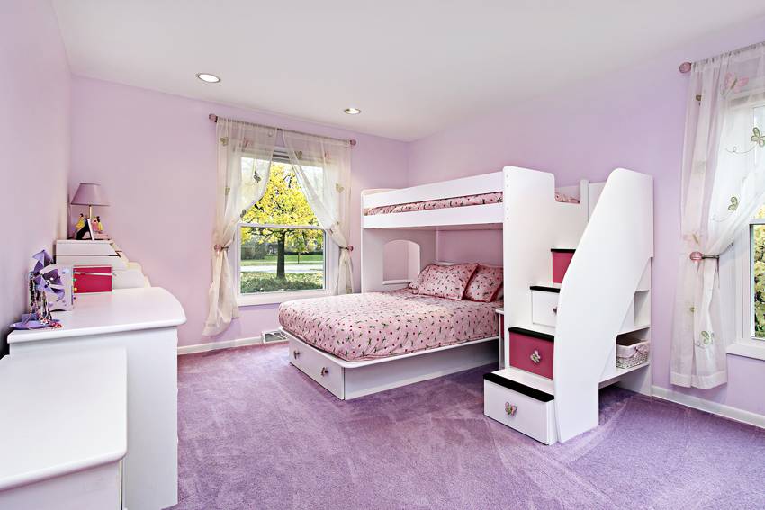 У девочек много вещей, поэтому ищите детскую мебель с большим количеством отделов для одежды. По дизайну легко определить, что это кровать на 2 уровня для девочек. В отделке не обязательно должен присутствовать розовый цвет или принты с изображением кукол, принцесс или русалочек.