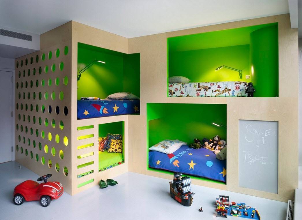 Если у вас не один ребенок, а комната не большого размера, то тут все просто – купите детям двухъярусную кровать.