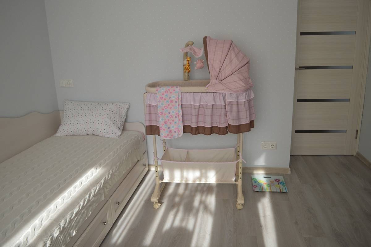 Комнату девочки до 2-х лет оклеивают обоями спокойных кремовых, сиреневых и нежно-абрикосовых тонов. Недопустимо использование кричащих ярких цветов, оказывающих раздражающее действие на психику малышки. Нужно создать в помещении убаюкивающую атмосферу, внушающую крохе чувство защищенности и комфорта.