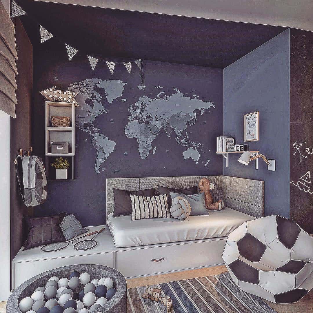 Карта мира, звездного неба или сказочная пиратская нарисованная карта подойдет для оформления комнаты метательного и любознательного подростка. В зависимости от способа внешнего вида карты, рисунок может соответствовать разным стилистическим направлениям.