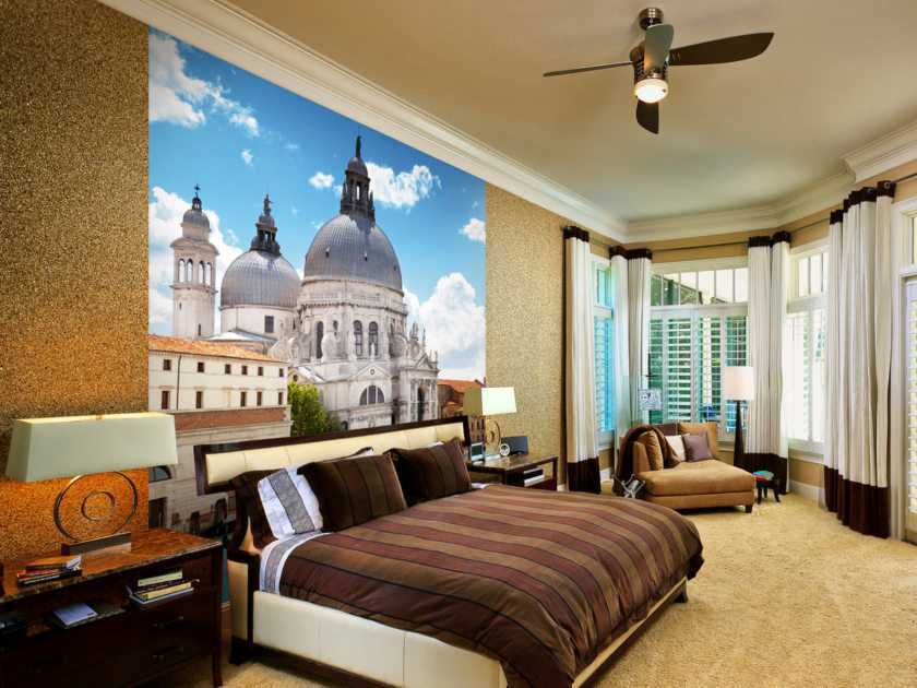 Свои правила диктует стиль: в классических интерьерах фотообои принято размещать над изголовьем кровати
