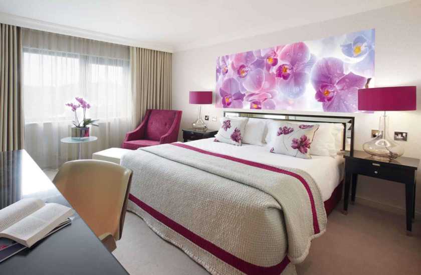 Важна и тематика изображения на фотообоях, например, излишне динамичные рисунки плохо подойдут для интерьера спальни: такие фотообои лучше оставить для зала. Желательно выбирать изображения таким образом, чтобы напечатанный объект в фотографическом разрешении не превышал по масштабам свой реальный аналог, если вещь на обоях изображена в несколько раз больше настоящего размера, может появиться дискомфорт и искажение восприятия картинки. А также не стоит выбирать излишне контрастные оттенки.