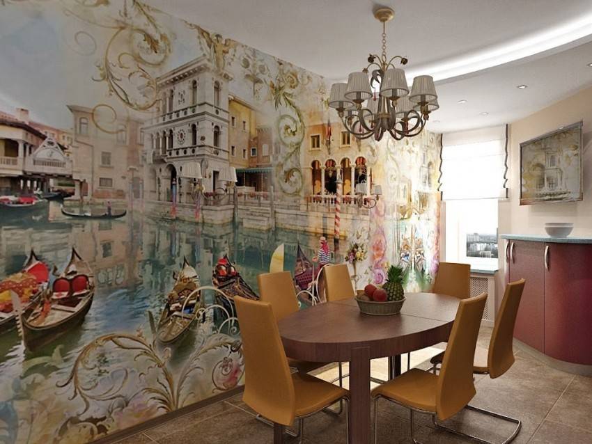 Варианты использования фотообоев на кухне: