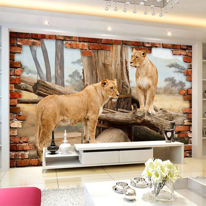 Изображение с дикими животными, такими как тигры, львы, медведи, леопарды, волки или носороги, уместнее размещать в интерьере гостиной или рабочем кабинете.