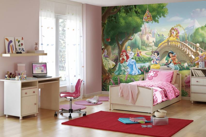 Фотообои в интерьере детской могут стать именно той деталью, которая превратит помещение в настоящий сказочный уголок. Изображения дивных животных, храбрых воинов, отважных рыцарей, красивых королевен, чудесных фей, героев мультипликационных фильмов – это малый перечень тем фотообоев в детскую.