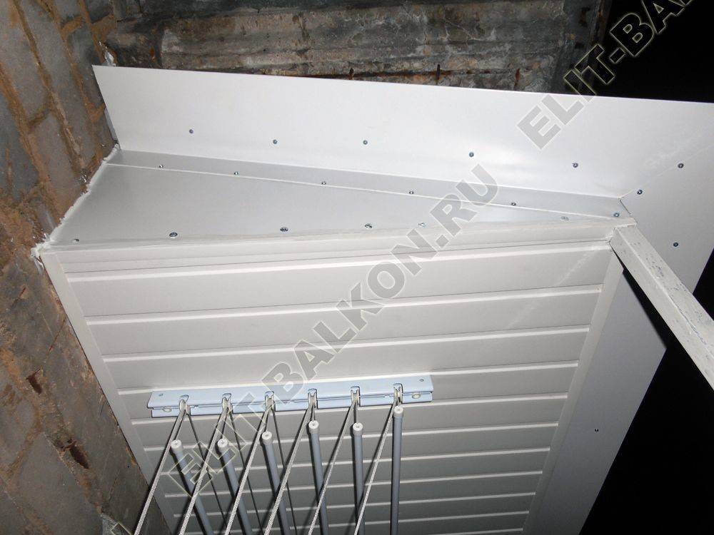 Чтобы времяпровождение на балконе было приятным и вызывало положительные эмоции, необходимо эстетично облагородить его внутреннюю часть. Потолок обшивается белыми пластиковыми панелями и окантовывается финишным профилем. Внутренняя сторона парапета декорируется ламинированными панелями с декоративной пленкой. Этот материал отлично зарекомендовал себя на открытых, незащищенных поверхностях. Не стоит забывать и о практичной стороне – сушке белья. Для этой цели можно установить качественную потолочную сушку.