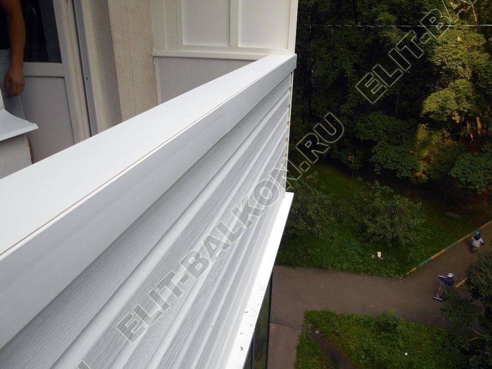 Одним из самых практичных и доступных материалов для отделки балкона является сайдинг ПВХ. Он отличается прочностью, долговечностью и не нуждается в особом уходе. Листы сайдинга надежно крепятся к сухой, обработанной от влажности рейке, и фиксируются саморезами. Внешние торцы и примыкание к стене закрываются комплектующими к сайдингу. Поскольку внешняя отделка – это «лицо» балкона, клиент вправе выбрать то, что пожелает. Главное – подобрать наиболее оптимальный оттенок материала, который будет гармонично сочетаться с фасадом всего здания.