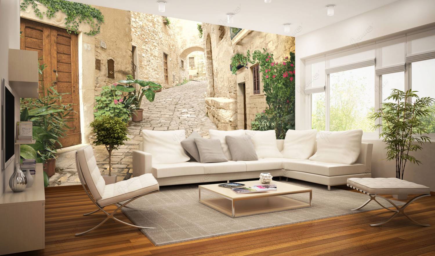 - Композиция с изображением старинных городов, улиц. Такая идея поможет создать в помещении атмосферу уюта.