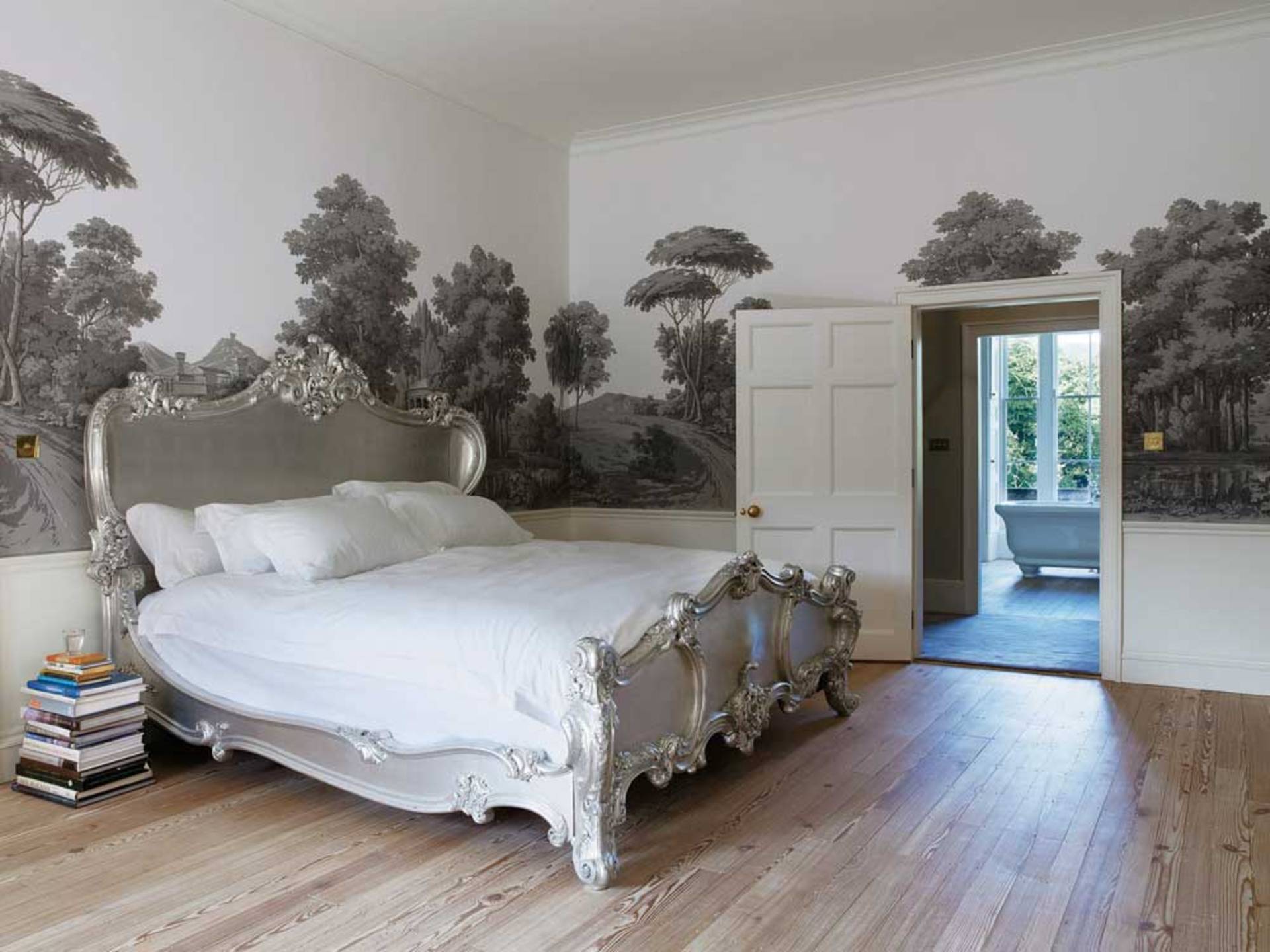 В этой комнате должна править умиротворенность, покой, ее интерьер призван способствовать здоровому сну, отдыху. Не все сюжеты будут уместными для ее декорирования. Например, если в качестве украшения выбрана фреска, пионы на стену или другие сюжеты на тему природы – хороший выбор, а изображения городов, портреты – не самые лучшие идеи. Рассмотреть следует и такие варианты: