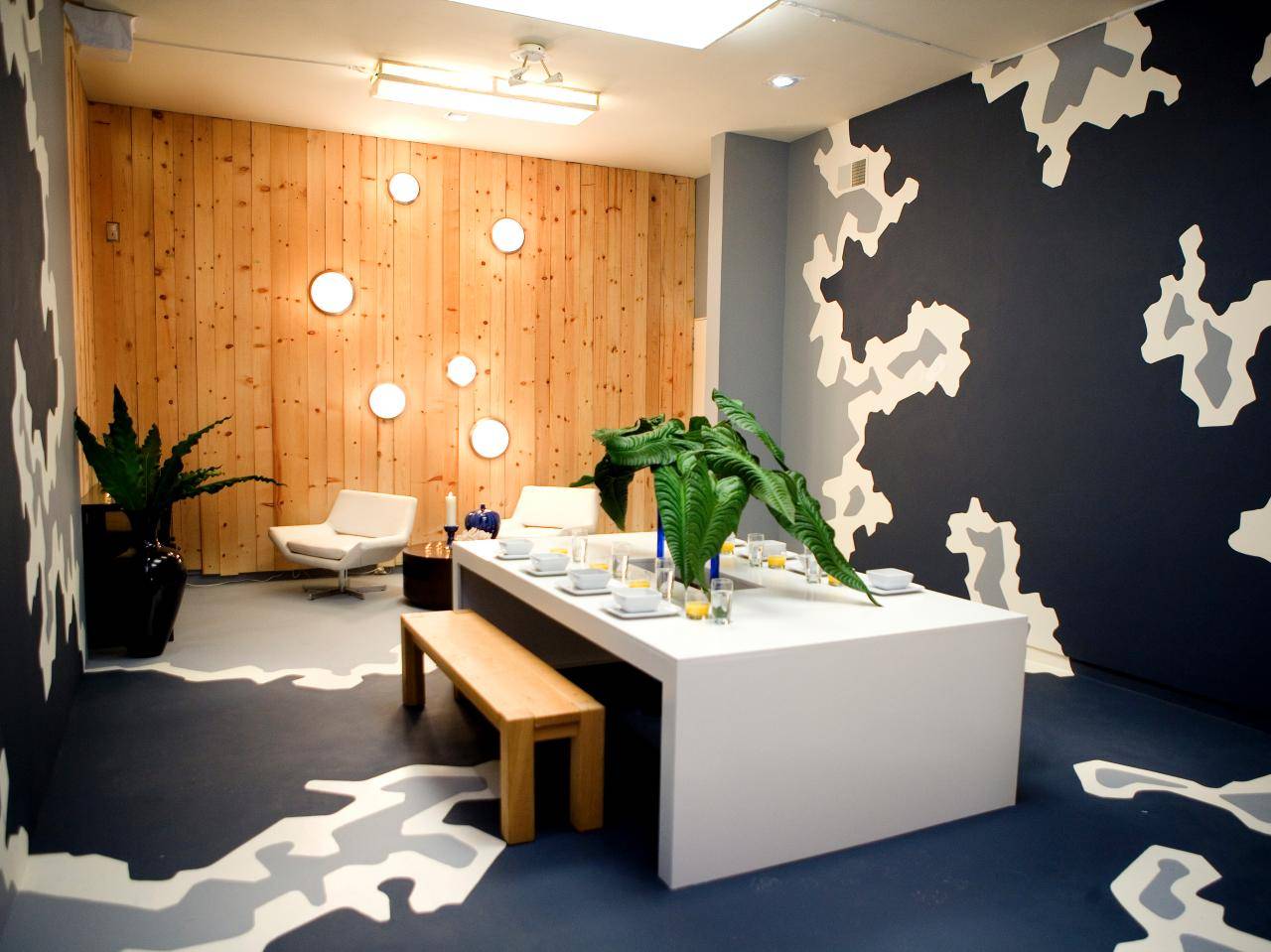 На этом процесс завершен, можно убрать с пола защитное покрытие, вымыть трафарет, а стену оставить до полного высыхания.