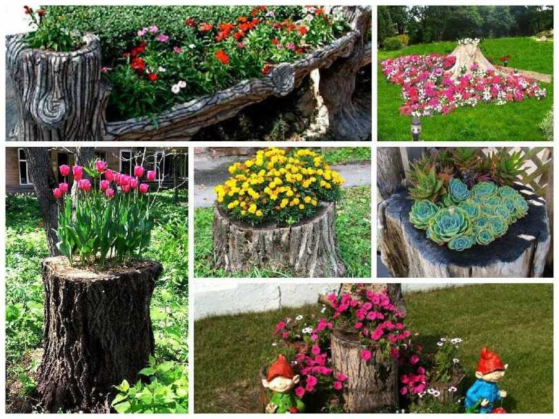 Если на приусадебном участке остались не выкорчеванные старые или больные деревья, то их пеньки можно приспособить под оригинальную клумбу для цветов, которая может стать центром альпийской горки.